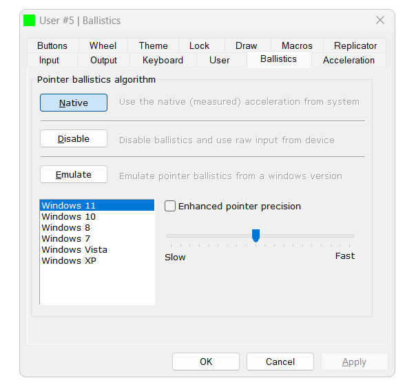 Custom mouse acceleration through emulated ballistics from past Windows versions