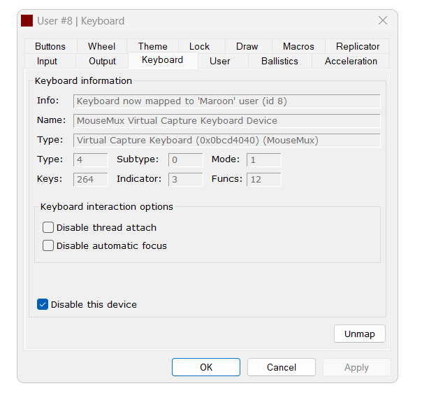 and keyboard. To unmap and re-map a keyboard go to the keyboard tab and