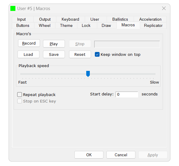 By seperating the loading & saving options MouseMux allows you to load a specific configuration each time without overwriting it.